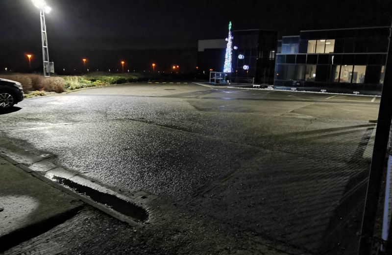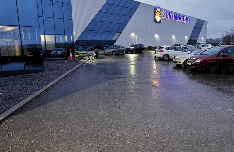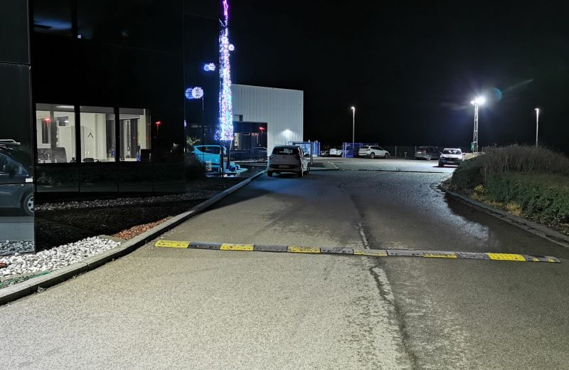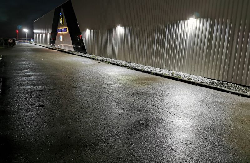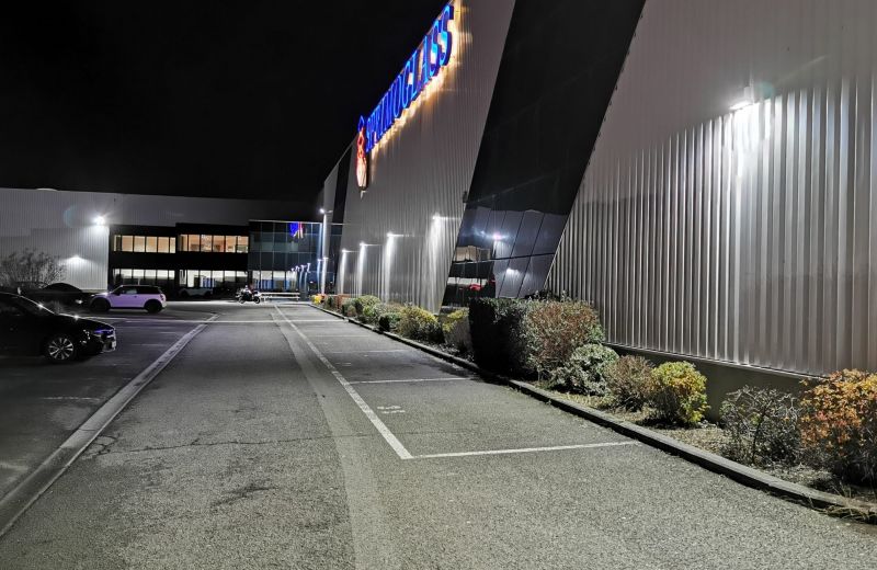 Pour des questions de sécurité, notre client souhaitait sécuriser les accès pour ses travailleurs entre les parkings et l’entrée du personnel. Il y avait environ 350m de chemins le long des halls de production qu’il fallait éclairer en limitant la pollution lumineuse et la consommation électrique. Challenge réussi puisqu’avec seulement 2000W nous avons éclairé parfaitement tous les chemins d’accès et les parkings avec moins de 6W/m de trottoir.