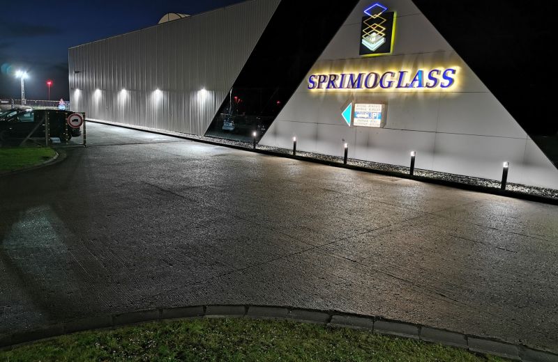 Afin de sécuriser ses différents accès, la société Sprimoglass nécessitait un nouvel éclairage de sa façade.