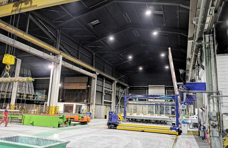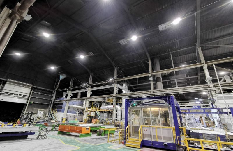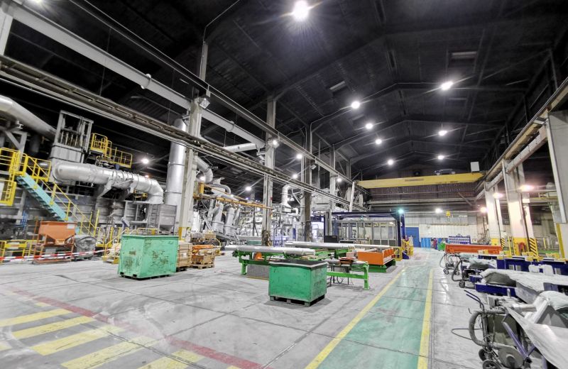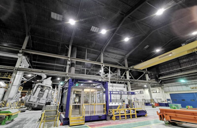 Le chantier a consisté au démontage des anciennes cloches et au placement de 23 nouvelles cloches d’éclairage LED de 150W positionnées de manière optimale. Le challenge était de placer des cloches LED résistantes aux hautes températures dans le hall de coulée d’aluminium et ce, afin d’obtenir un éclairage le plus uniforme et le plus économique possible.