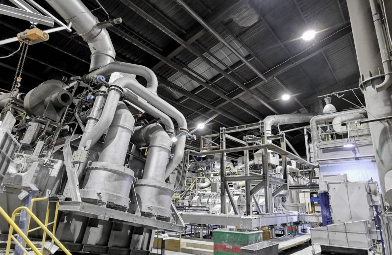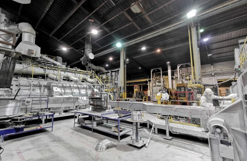 Afin d’économiser l’énergie et d’améliorer la visibilité dans le hall de coulée, nous avons réalisé l’étude, la fourniture et le placement de 22 cloches d’éclairage haute température (65°C).
